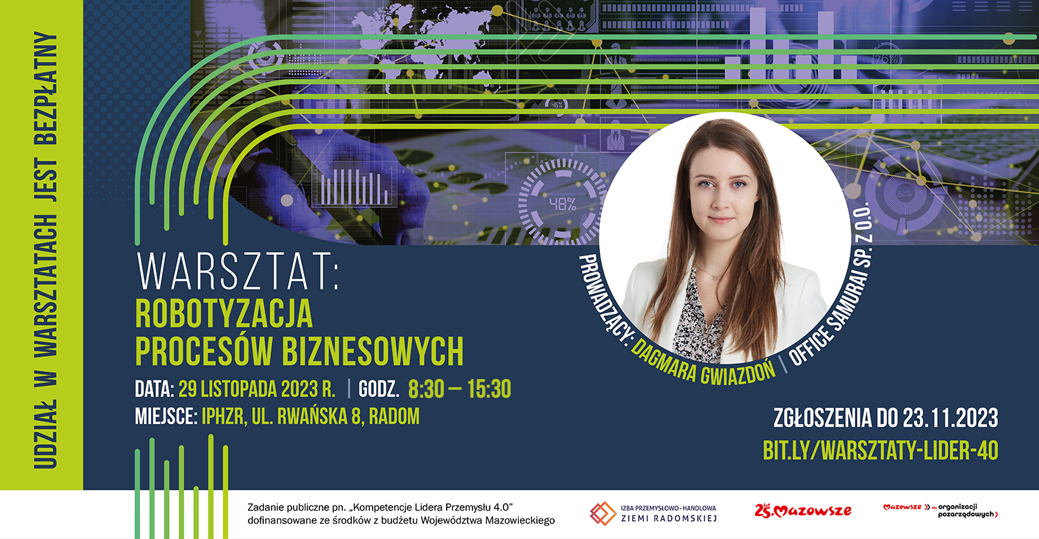 Izba Przemysłowo-Handlowa Ziemi Radomskiej pełniąc rolę animatora przedsiębiorczości w regionie radomskim realizuje zadanie "Kompetencje Lidera Przemysłu 4.0" skierowane do kadry zarządzającej, właścicielskiej oraz współwłaścicielskiej przedsiębiorstw z regionu radomskiego, których działalność wpisuje się m.in. w inteligentną specjalizację Mazowsza przedstawioną jako obszary opisane w Regionalnej Strategii Województwa Mazowieckiego do 2030 roku (RIS), ze szczególnym uwzględnieniem obszaru II – Inteligentne systemy w przemyśle i infrastrukturze.
