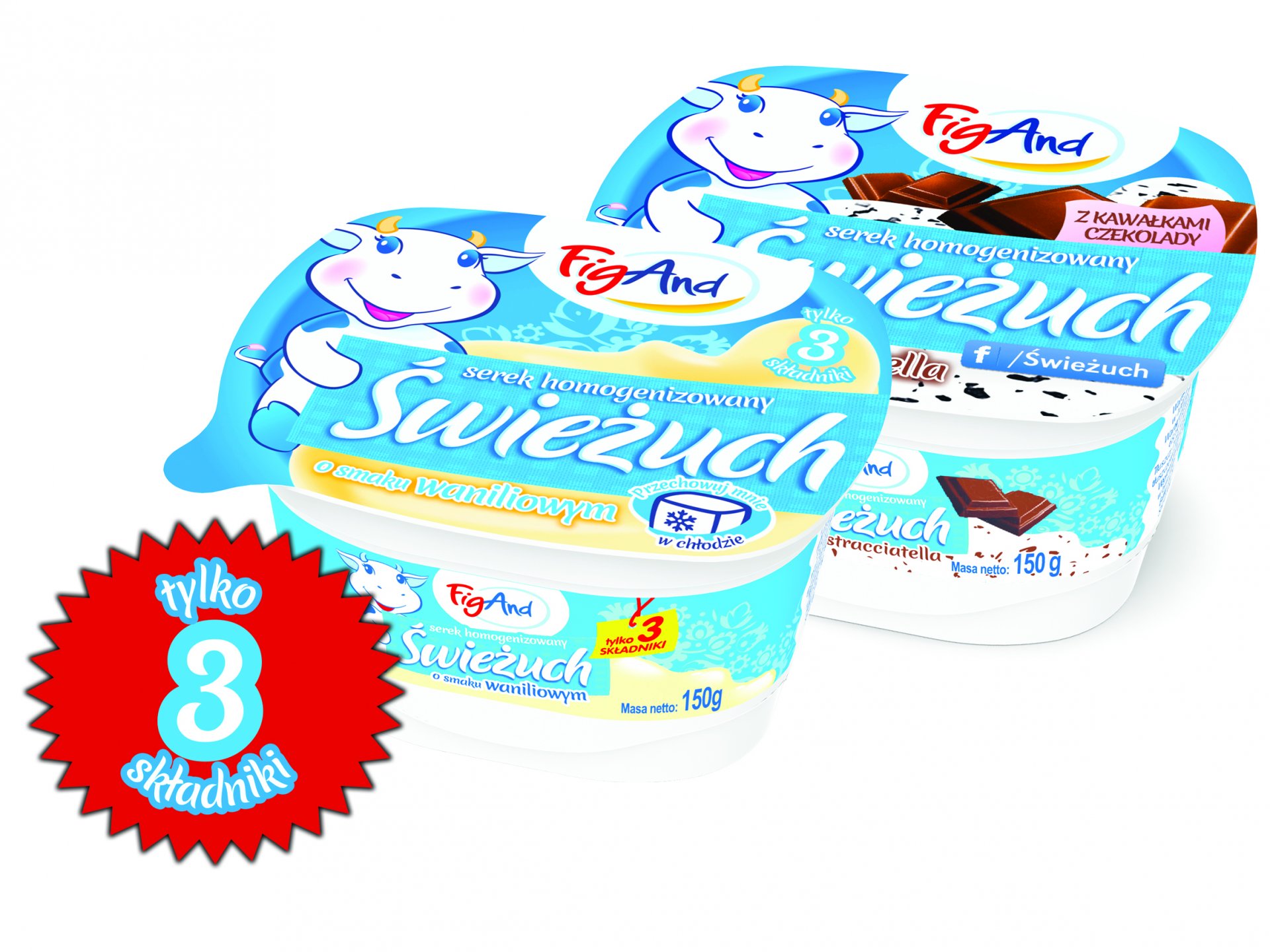 Wszystkie produkty Zakładu Mleczarskiego FigAnd wytwarzane są z najwyższej jakości polskiego mleka i najlepiej dobieranych składników. Figand w swojej ofercie posiada jedno-składnikowy serek homogenizowany Świeżuch, jedyny na rynku, bez żadnych zbędnych polepszaczy. Portfolio produktów to także jedno-składnikowa naturalnie gęsta śmietana Smaczna, uzyskiwane tradycyjną metodą twarogi Klinek, do wypieku ciast i naleśników Ser Twarogowy ze 100% twarogu, naturalny Jogurt Grecki bez zagęstników, jogurty pitne bez syropu glukozowo-frukozowego. a także inne produkty, które przyciągają klientów swoimi walorami smakowymi, jakościowymi i przyjaznym opakowaniem.